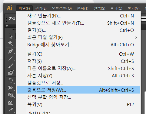 일러스트는 다른이름으로 저장을 눌러도 jpg나 png가 뜨지 않습니다. 대신
